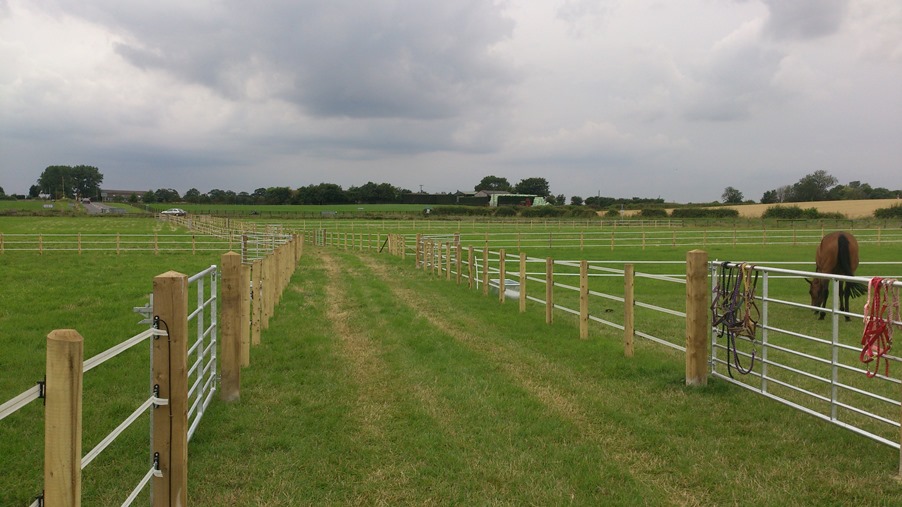 Each horse is allocated a paddock of its own. The paddocks are fenced with permanent wooden posts and electric fencing. Electric fencing is run off the premises mains electric supply. Each paddock has mains water connected to troughs.